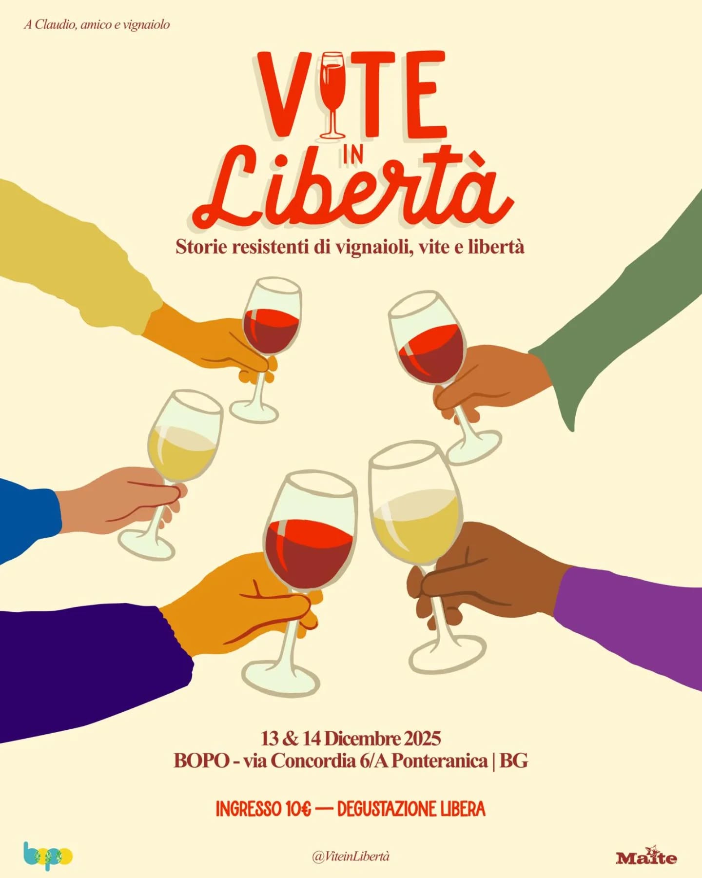 L'ingresso prevede il versamento di un contributo per la degustazione di 10 euro comprensivo di ingresso allo spazio e bicchiere per la degustazione, è possibile acquistare il biglietto in prevendita a questo link: https://linktr.ee/viteinliberta